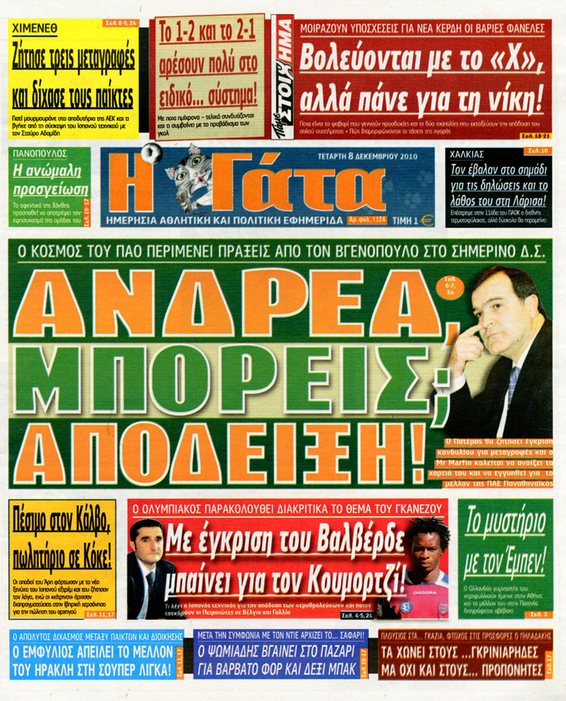 Πρωτοσέλιδα αθλητικών εφημερίδων 8/12