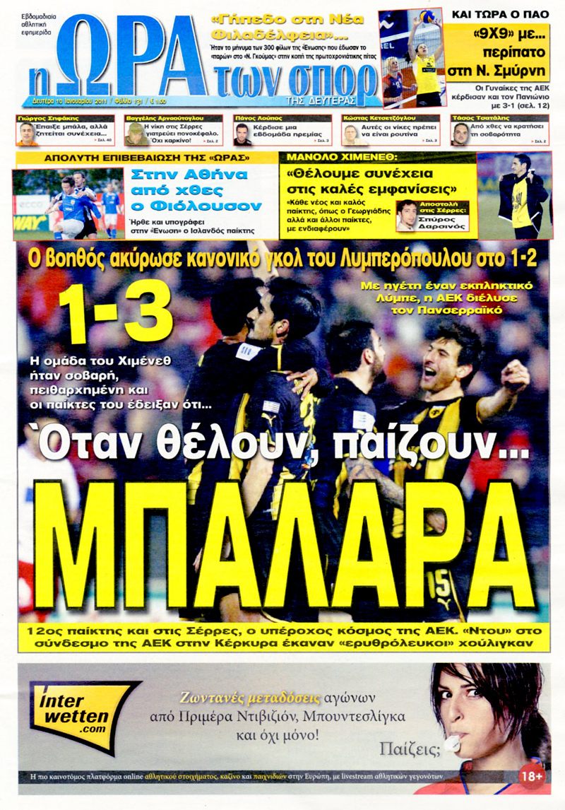 Πρωτοσέλιδα αθλητικών εφημερίδων 10/1